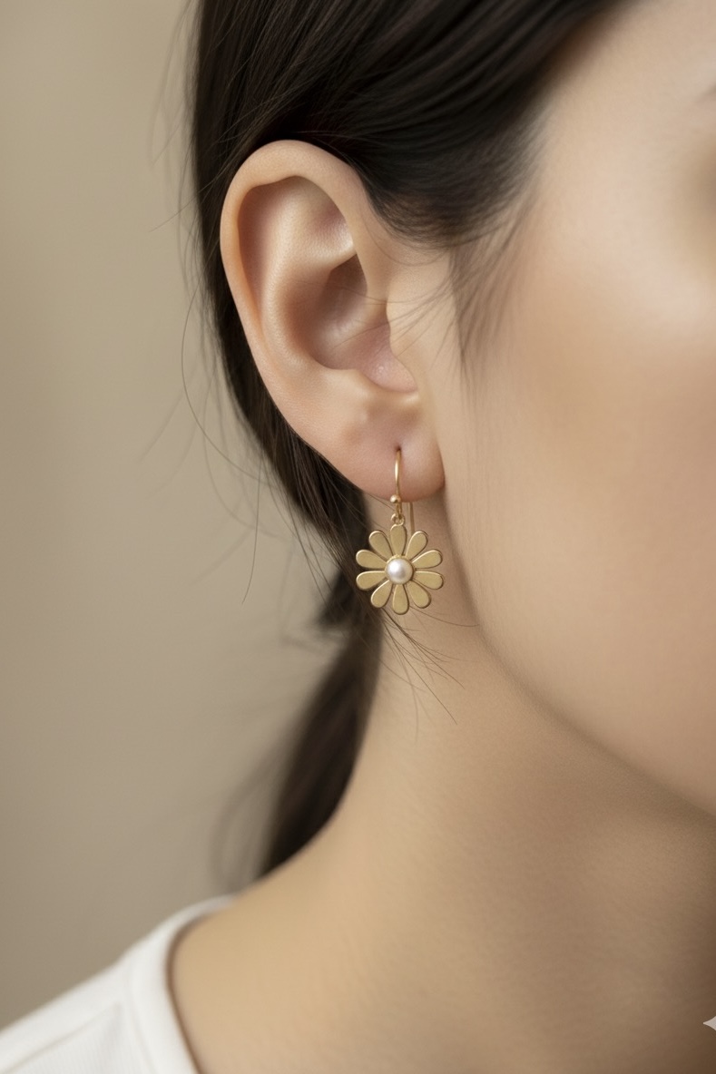 گوشواره آویز استیل طرح تک گل رُزگلد مناسب استفاده روزانه مینیمال