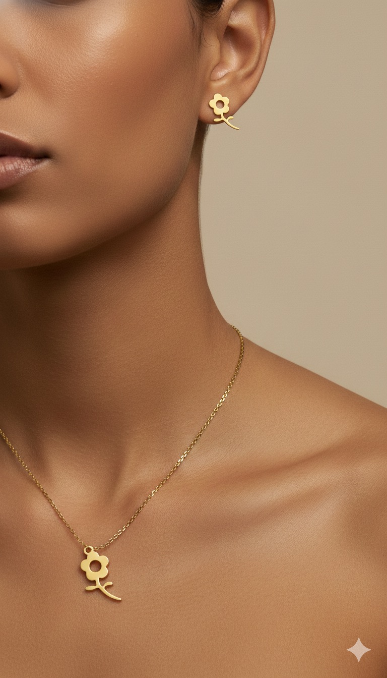 نیم ست گردنبند و گوشواره میخی